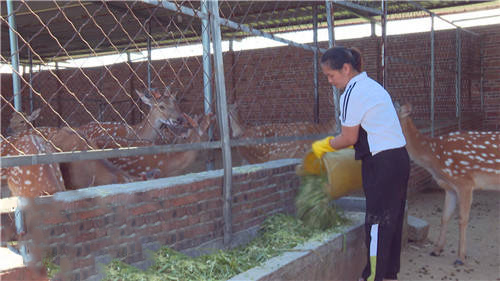 為了保證梅花鹿的質(zhì)量,李艷娟采取原生態(tài)喂養(yǎng)的方式,喂養(yǎng)玉米稈、牧草等。同時,她還專門聘請了村里兩名貧困群眾,負(fù)責(zé)照料這群梅花鹿。