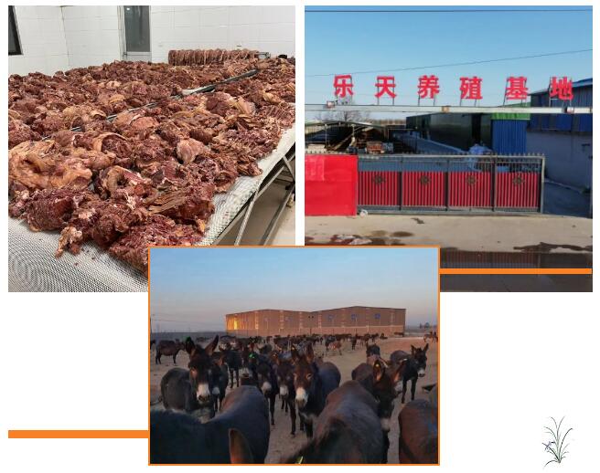 2020年隨著市場(chǎng)發(fā)展需求,公司擴(kuò)大發(fā)展規(guī)模,建立了河北樂天毛驢養(yǎng)殖基地,基地總投資1000余萬元,占地面積3.13萬余平方米,預(yù)計(jì)年可出欄8000頭。河北樂天養(yǎng)殖基地,采用滄州金絲小棗、內(nèi)蒙古干草和苜蓿,作為主要飼料,主要靜養(yǎng)3年以上7年以下肉質(zhì)細(xì)嫩的新疆驢以及生長(zhǎng)發(fā)育比較快的烏頭黑驢。除此外,基地還與內(nèi)蒙巴肯鐘的養(yǎng)驢地區(qū)建立了長(zhǎng)期合作機(jī)制,保障驢源的充足穩(wěn)定和無污染性,有效控制原材料的品質(zhì),同時(shí)保證驢品種的多樣性,驢舍采用散欄式自由覓食的方法,保障了驢肉營(yíng)養(yǎng)豐富,口質(zhì)鮮美,更好的滿足市場(chǎng)及客戶需求。