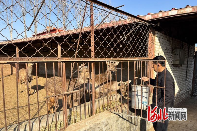 圖為遷西縣三屯營鎮(zhèn)龐鐵梅花鹿養(yǎng)殖場負責(zé)人正在給梅花鹿加草料。王連營攝