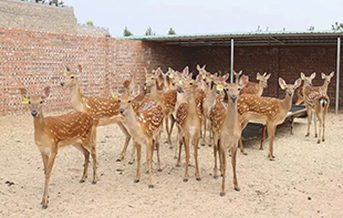 鹿鼎山萬畝梅花鹿繁育基地坐落在山東省臨沂市蘭陵縣下村鄉(xiāng)的一個山坡上,風(fēng)景優(yōu)美、郁郁蔥蔥的山林環(huán)繞。走進(jìn)基地,一排排整齊的鹿舍里,一群群俏皮可愛的小鹿有的在那活蹦