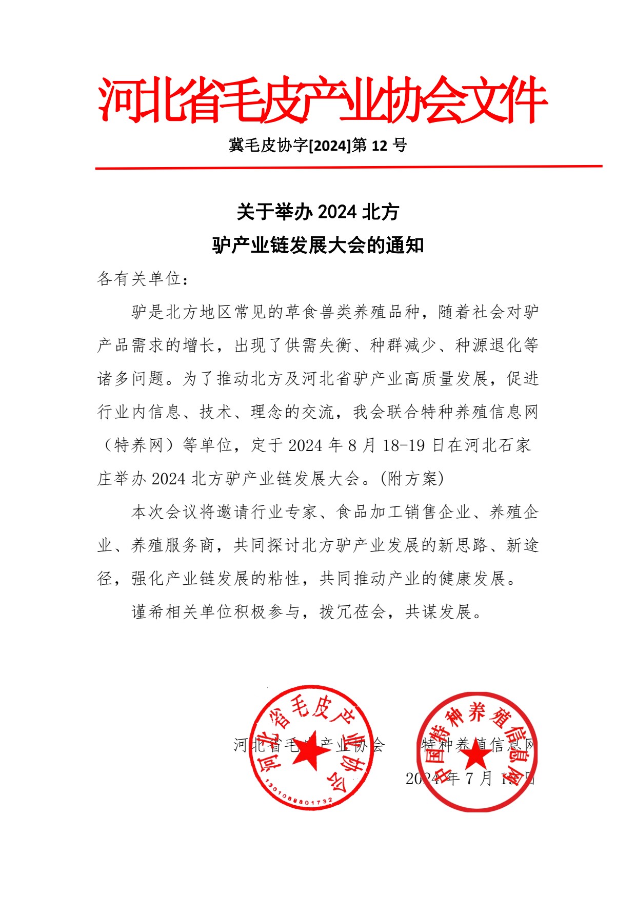 關于舉辦2024北方驢產業(yè)鏈發(fā)展大會的通知