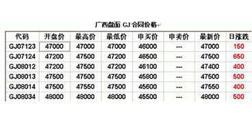 今日廣西盤(pán)面GJ與生絲合同再度走出分化行情。GJ合同齊漲,且有價(jià)無(wú)市的觀望心態(tài)十分明顯,SS合同則大部下跌,遠(yuǎn)周SS08034合同再度跌至17萬(wàn)的整數(shù)價(jià)位?! V西盤(pán)面GJ成交量