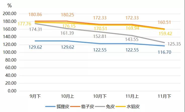 11月下半月,裘皮產(chǎn)品價(jià)格總指數(shù)持續(xù)下滑