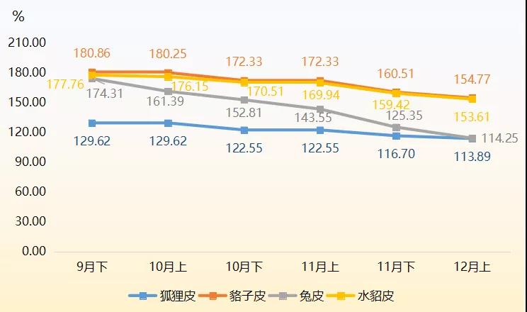 12月上半月,裘皮產(chǎn)品價格指數(shù)延續(xù)下滑態(tài)勢