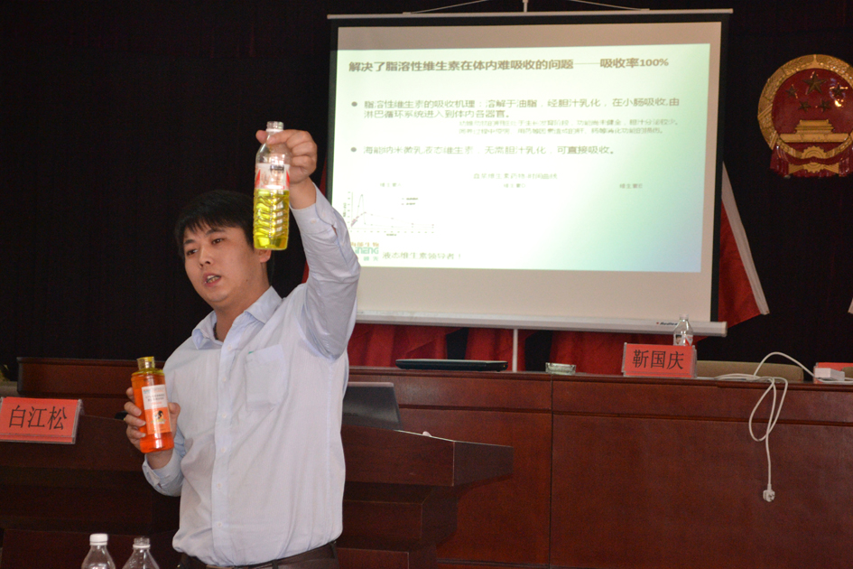 山東海能生物工程有限公司經(jīng)理施恒俊對(duì)本公司產(chǎn)品進(jìn)行演示介紹