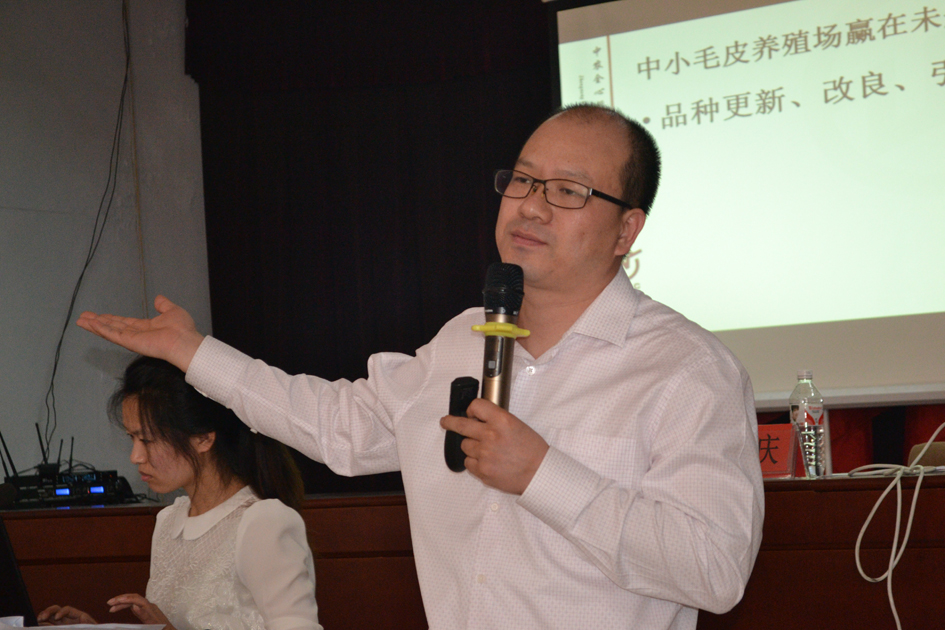 在第三版塊中,北京哈維思特飼料制造有限公司技術(shù)經(jīng)理李興閣做了《貉狐貂發(fā)泡配合飼料發(fā)展的探討》專題報(bào)告,從發(fā)泡配合飼料的優(yōu)點(diǎn)、發(fā)泡配合飼料的發(fā)展趨勢(shì)及發(fā)泡配合飼料的感官質(zhì)量要求等方面進(jìn)行了分析;針對(duì)當(dāng)前的形勢(shì),河北省毛皮產(chǎn)業(yè)協(xié)會(huì)副會(huì)長、養(yǎng)殖委員會(huì)執(zhí)行主席、河北海原貂業(yè)總經(jīng)理艾興一做了《2014年毛皮行情形勢(shì)分析總結(jié)和2015年前景預(yù)測(cè)分析》的專題報(bào)告;河北省毛皮產(chǎn)業(yè)協(xié)會(huì)副秘書長、養(yǎng)殖委員會(huì)常務(wù)副主席、北京中農(nóng)同創(chuàng)生物科技有限公司董事長白江松針對(duì)當(dāng)前中小養(yǎng)殖戶抗風(fēng)險(xiǎn)能力較差,做了《提高行業(yè)競(jìng)爭力,提升中小養(yǎng)殖場(chǎng)抗風(fēng)險(xiǎn)能力》的專題報(bào)告,多層面、多角度進(jìn)行了分析;齊魯動(dòng)物保健品有限公司技術(shù)部經(jīng)理劉長浩做了《毛皮動(dòng)物疾病預(yù)防及防治技術(shù)》,分析了當(dāng)前養(yǎng)殖過程中存在的疾病問題及解決的辦法。各位嘉賓的演講聲情并茂,分析到位,不時(shí)贏得與會(huì)人員熱烈的掌聲。
