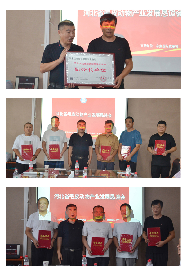 懇談會上,靳國慶為省協(xié)會顧問、副會長、會員頒發(fā)了牌匾和證書。本次會議得到了辛集國際皮革城的大力支持。
