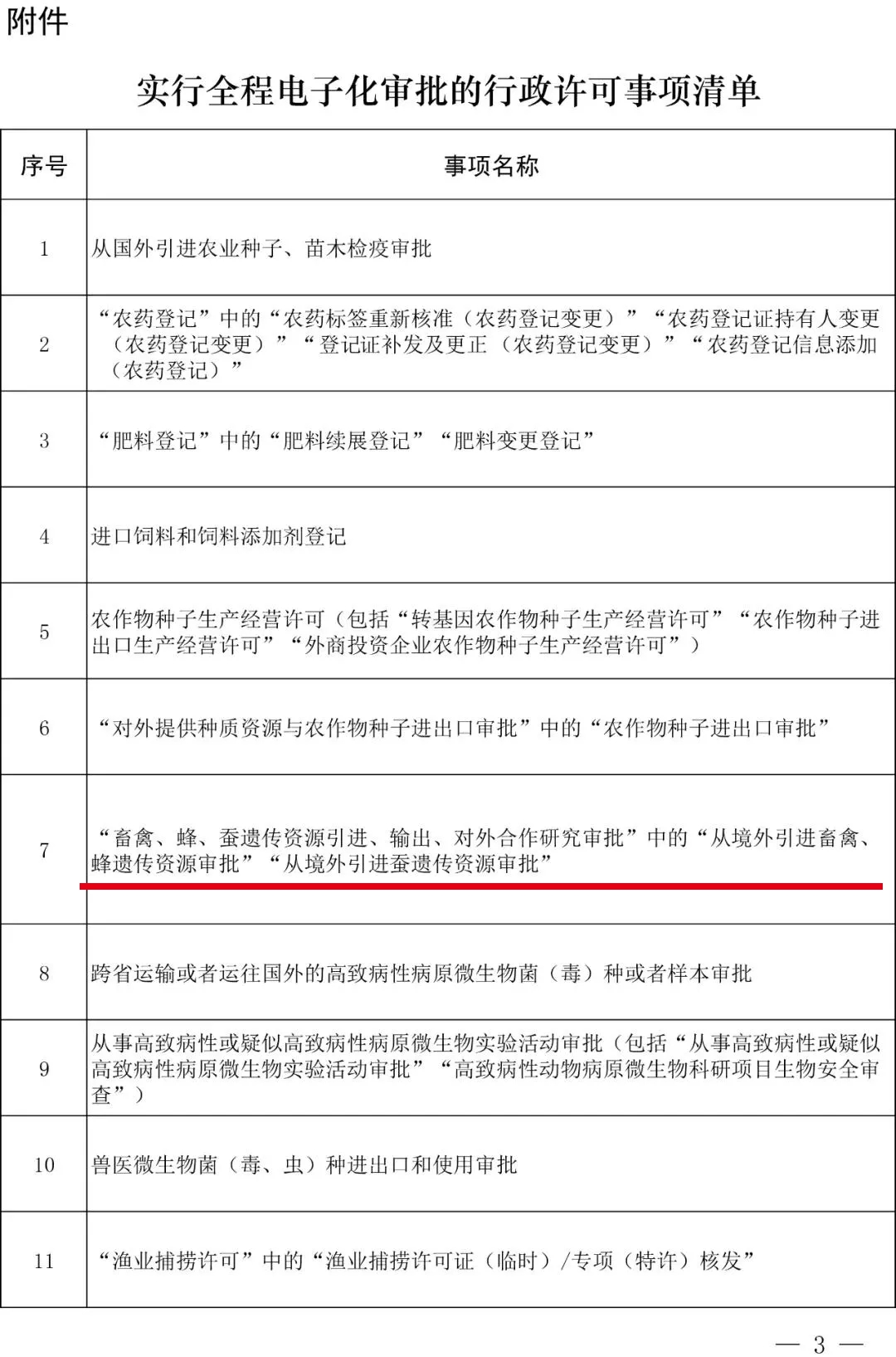 農業(yè)農村部:“從境外引進畜禽、蜂遺傳資源審批”等11項行政許可事項實現(xiàn)電子化審批