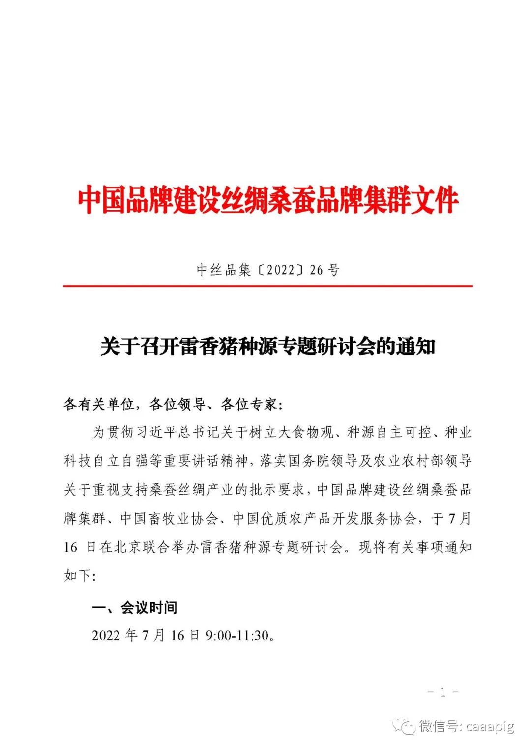 關(guān)于召開雷香豬種源專題研討會(huì)的通知