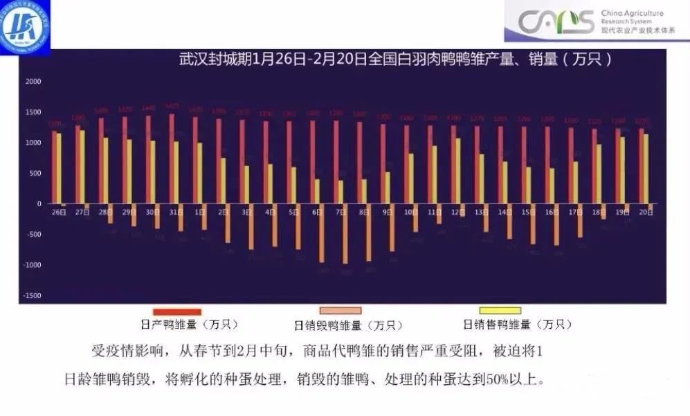 在全國范圍內(nèi),大中小城市的飯店、食品加工店關(guān)門,烤鴨、燒鴨、咸水鴨、鹵鴨等深受消費(fèi)者喜愛的食品消費(fèi)極度下降,下降量達(dá)80%;另外,全國的工礦企業(yè)、建筑工地、大學(xué)食堂關(guān)門,鴨肉消費(fèi)停滯,市場消費(fèi)量約為正常消費(fèi)量的20%,純減少50萬噸/月或更多;此外,全國人口流動量下降70%以上,鐵路、公路在春節(jié)期間的流量下降80%,旅游景區(qū)全部關(guān)門,旅游食品銷量快速下降。據(jù)調(diào)研顯示,有超過90%的消費(fèi)者認(rèn)為減少了肉類消費(fèi)。