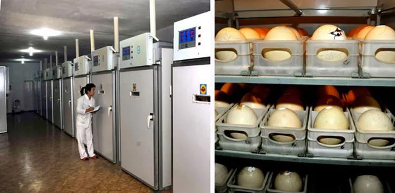 所有的鴕鳥蛋將會在這座大樓的恒溫孵化室里得到精心照料。那些優(yōu)質(zhì)的鴕鳥破蛋后,會發(fā)現(xiàn)它們的家園簡直就是宮殿,人類就是它們的貼身仆從。為了扶持鴕鳥產(chǎn)業(yè),朝鮮將平壤北部鄰近機(jī)場的一片山谷規(guī)劃成鴕鳥養(yǎng)殖基地,整片山谷都是鴕鳥的地盤。根據(jù)朝鮮的媒體報道,整座養(yǎng)殖場建有 110 多座鴕鳥畜欄,以及包括孵化場、肉類加工廠、科技園和工人活動廳等 10 處設(shè)施。