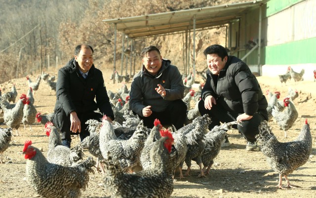 近年來,地處豫西伏牛山區(qū)的河南省汝陽縣積極發(fā)展“一鄉(xiāng)一業(yè)、一村一品”富民產(chǎn)業(yè)。在中信重工駐村幫扶工作隊的幫扶下,汝陽縣王坪鄉(xiāng)柳樹村依靠當(dāng)?shù)厣鷳B(tài)資源,根據(jù)市場需求,科學(xué)飼養(yǎng)蘆花雞、波爾山羊等,發(fā)展“訂單農(nóng)業(yè)”,促進農(nóng)民增收致富。圖為汝陽縣王坪鄉(xiāng)柳樹村幸福路養(yǎng)殖專業(yè)合作社養(yǎng)殖的蘆花雞即將外銷,駐村幫扶工作隊員和村民滿臉喜悅。