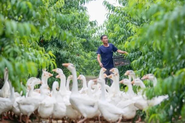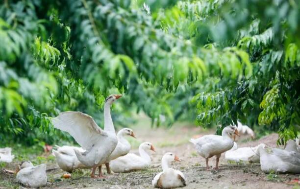 河南睢縣:蟠桃樹下育白鵝 特色養(yǎng)殖效益高