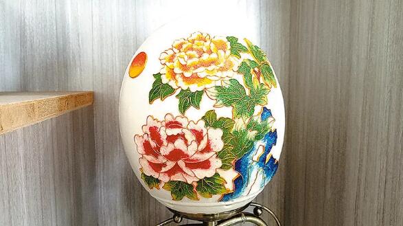 雍容華貴的牡丹、逸趣橫生的梅花、濯清漣而不妖的蓮花、活潑靈動的金魚……如果不是親眼所見,還真讓人難以置信,一枚枚鴕鳥蛋殼上竟能彩繪、雕刻出如此驚艷的圖案,而這些藝術品就來自上河南省駐馬店市蔡縣的一個小鄉(xiāng)村。