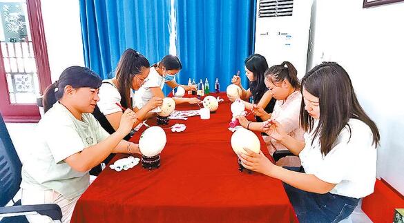 鴕鳥蛋雕藝術品經(jīng)過包裝、宣傳、推廣,深受客戶喜愛,訂單源源不斷。喜歡琢磨事兒的郭建光還為鴕鳥蛋殼設計了燈光系統(tǒng),讓鴕鳥蛋雕藝術品不僅白天有“顏值”,晚上觀賞效果更佳。目前,該公司年銷售鴕鳥蛋及鴕鳥蛋藝術品6000多枚,帶動多名手工藝人在家門口實現(xiàn)就業(yè)夢。