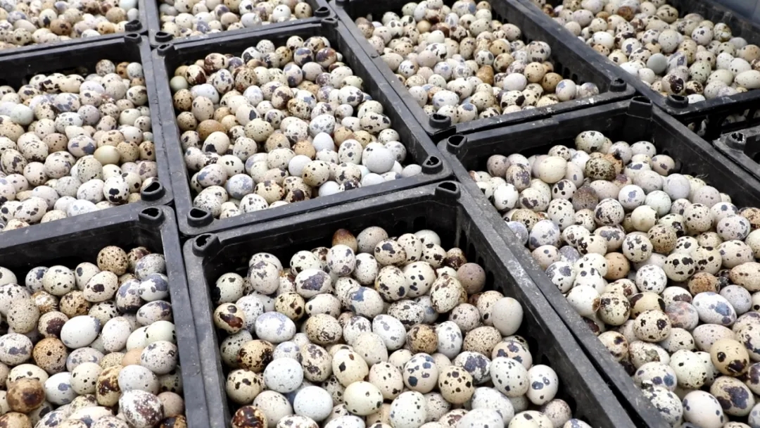 走進(jìn)南唐鄉(xiāng)原村的鵪鶉養(yǎng)殖場(chǎng),10萬(wàn)只成年鵪鶉正在悠然進(jìn)食,養(yǎng)殖籠內(nèi)還不時(shí)有鵪鶉蛋滾落而出,養(yǎng)殖戶(hù)們正在檢查、撿拾鵪鶉蛋。