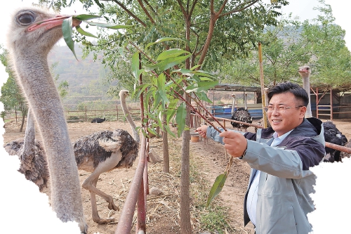 “有一回去滕州學(xué)習(xí)考察,看見(jiàn)一個(gè)農(nóng)家樂(lè)老板養(yǎng)了幾只鴕鳥(niǎo),覺(jué)得很新奇。一問(wèn)才知道,人家這鴕鳥(niǎo)不是養(yǎng)來(lái)吃的,是為了吸引顧客。”當(dāng)時(shí)楊雨心里就有了盤(pán)算。他回到村里,與“兩委”成員一商量,決定發(fā)展這一特色養(yǎng)殖,把村里的現(xiàn)有資源化零為整。