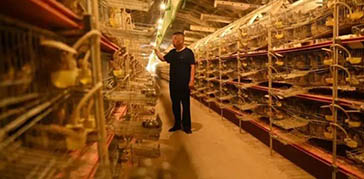 農(nóng)民正在檢查鵪鶉的生長狀況 近日,在河北省秦皇島市昌黎縣朱各莊鎮(zhèn)洼里村的鵪鶉養(yǎng)殖大棚內(nèi),農(nóng)民正在通過自動化養(yǎng)殖設(shè)施查看鵪鶉的生長狀況?! 〗陙?,昌黎縣堅持把發(fā)展特