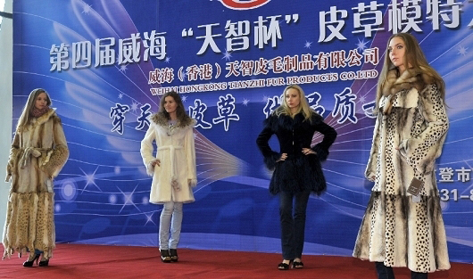 為做大做強(qiáng)皮草產(chǎn)業(yè),文登市先后舉辦了兩屆國(guó)際皮草博覽會(huì)、四屆皮草模特大賽,叫響了"中國(guó)裘皮產(chǎn)業(yè)基地"品牌。圖為第四屆皮草模特大賽現(xiàn)場(chǎng)。