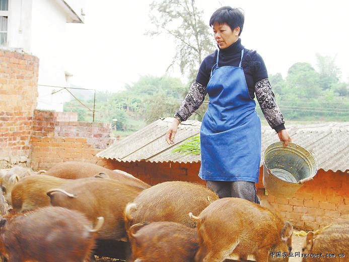 李冬蘭在喂野豬。