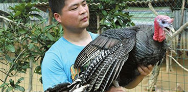 昨日,黃袍野山雞養(yǎng)殖場(chǎng)老板汪聰勇在觀看山雞生長(zhǎng)情況。 通城縣塘湖鎮(zhèn)石港村汪聰勇返鄉(xiāng)利用荒山創(chuàng)辦了山雞養(yǎng)殖場(chǎng),年養(yǎng)殖美國(guó)七彩山雞、火雞等1000多只,網(wǎng)上銷售并帶動(dòng)周邊