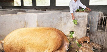 四川洪雅縣余坪鎮(zhèn)蒙川野豬養(yǎng)殖場目前正是熱鬧一幕,隨著吆喝聲場主羅倫春麻利地把紅苕投喂給圈內(nèi)養(yǎng)殖的野豬,只見一頭頭壯實(shí)的野豬搶吃得正歡,周圍圈舍內(nèi)的野豬不時(shí)趴在圈沿