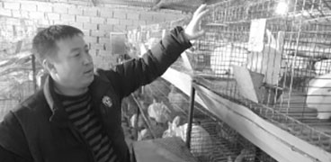 劉德煜在檢查種兔孕育情況?! ≡卺稁r藥山鎮(zhèn)的永泉村有個特殊的養(yǎng)殖大棚。聽村民說,這個80米長的大棚幾年里被主人變來變去,不是養(yǎng)雞就是養(yǎng)驢,現(xiàn)在,又養(yǎng)起了獺兔。在村民
