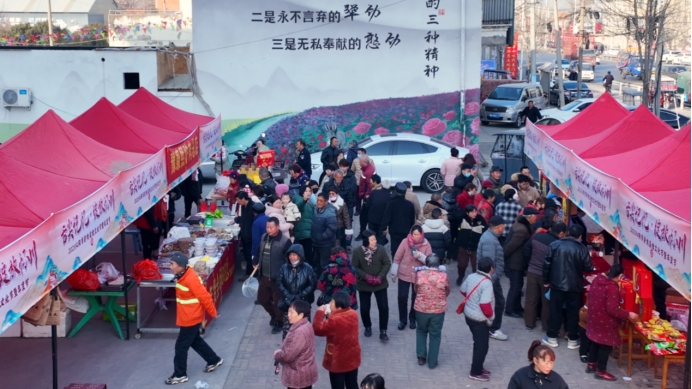 近60家來自沁陽市各鄉(xiāng)鎮(zhèn)(街道)的特色美食攤位依次排開,各類特色年貨禮盒琳瑯滿目,從酥脆的驢肉丸、筋道的小車肉等驢肉制品,到暖暖的姜茶、金黃的菊花茶、黑陶、皮筋等特色鄉(xiāng)村產(chǎn)品,還有深受孩子喜愛的特色粗糧饅頭,吸引了眾多村民和游客前來,大家三五成群,穿梭于各個攤位之間,臉上洋溢著歡樂的笑容,享受著挑選年貨的樂趣。