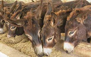 近日,天剛蒙蒙亮,山東省菏澤市定陶區(qū)張灣鎮(zhèn)魏家村良源肉驢繁育基地已熱鬧起來。“嘚兒……”養(yǎng)殖戶魏現(xiàn)生一聲吆喝,開始蹲在地上給一頭灰黑色的肉驢