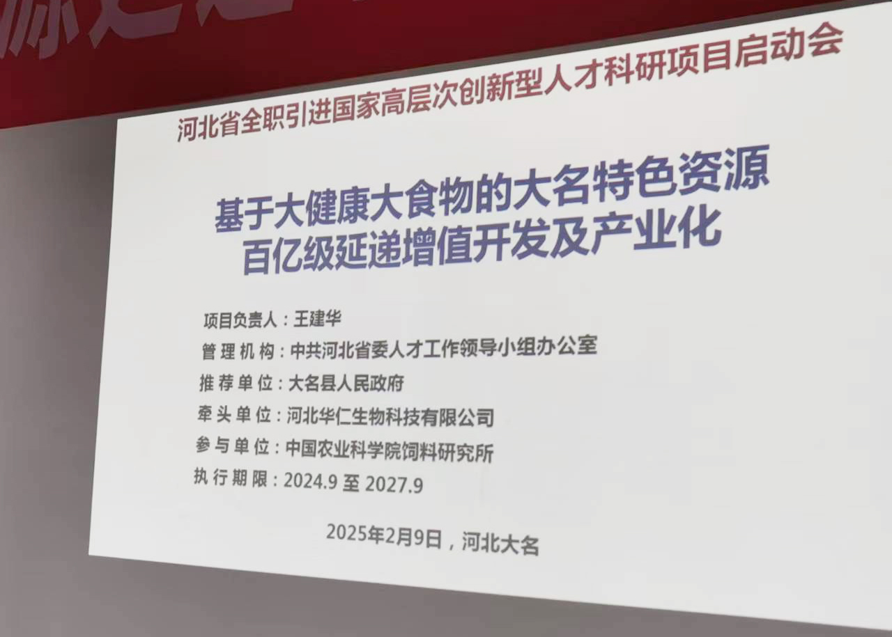 2025年2月9日,河北省全職引進國家高層次創(chuàng)新型科技人才科研項目“基于大健康食物的大名特色資源百億級延遞增值開發(fā)及產(chǎn)業(yè)化”啟動儀式在河北華仁生物科技有限公司(河北省毛皮產(chǎn)業(yè)協(xié)會副會長單位)舉辦。