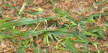 近日,在河北省滄州市海興縣趙毛陶鎮(zhèn)北四村的螞蚱養(yǎng)殖大棚內(nèi),養(yǎng)殖戶(hù)崔向龍正在給螞蚱喂食新鮮的牧草。只見(jiàn)手指般粗壯的螞蚱在大棚里蹦跳翻飛,撲騰聲此起彼伏,迎來(lái)了又一個(gè)豐