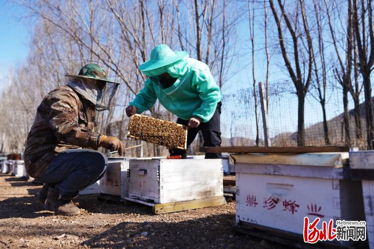 2022年3月1日,在河北省遵化市娘娘莊鄉(xiāng)鼎珍養(yǎng)蜂專業(yè)合作社內(nèi),蜂農(nóng)正在檢查蜂群生長情況。河北省遵化市娘娘莊鄉(xiāng)因地制宜,通過“合作社+農(nóng)戶”的模式,積極發(fā)展蜜蜂養(yǎng)殖,推動(dòng)生態(tài)產(chǎn)業(yè)健康發(fā)展,實(shí)現(xiàn)農(nóng)民增收致富。