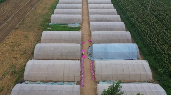 走進村民李松的螞蚱養(yǎng)殖基地,25個大棚整齊排列,棚內(nèi)手指粗的螞蚱四處蹦跶,發(fā)出“簌簌”的撲騰聲。