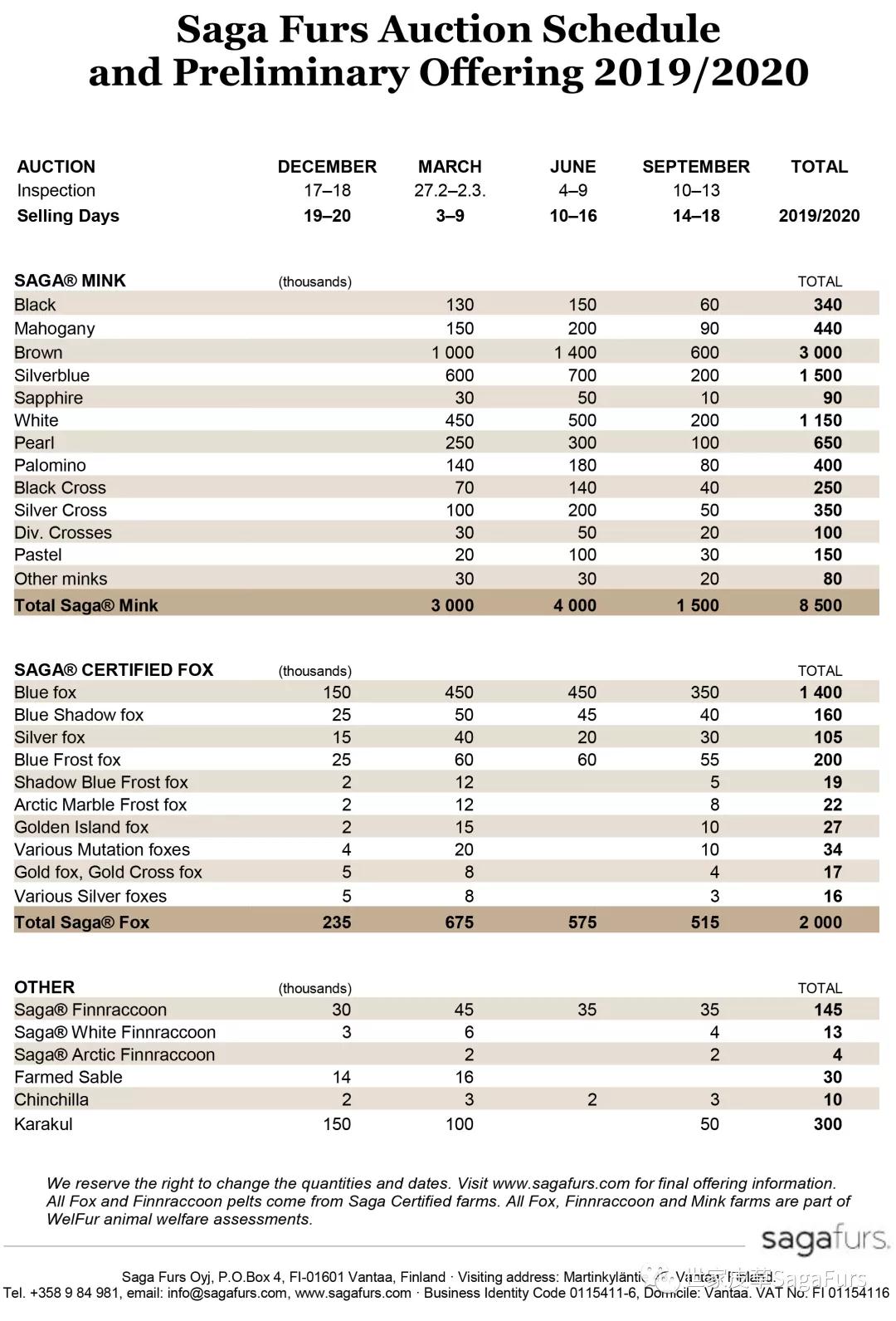 為了您更好地規(guī)劃下一年度拍賣會行程,世家皮草2019-2020拍賣年度的拍賣會日期和預(yù)計銷售數(shù)量現(xiàn)已新鮮出爐。
