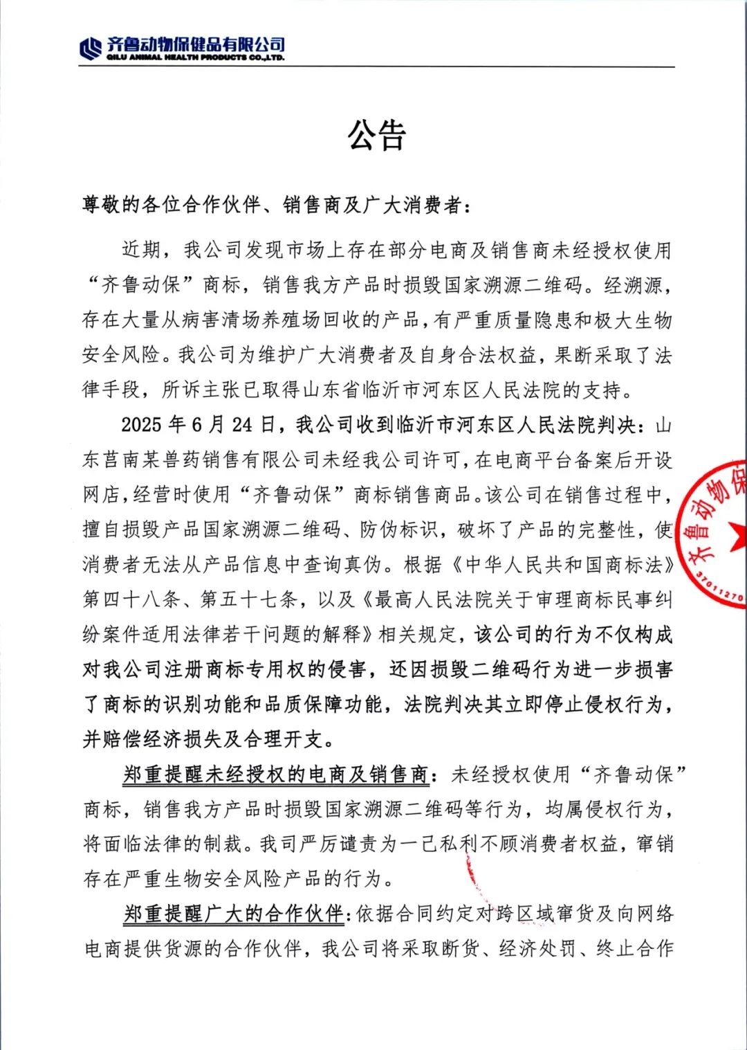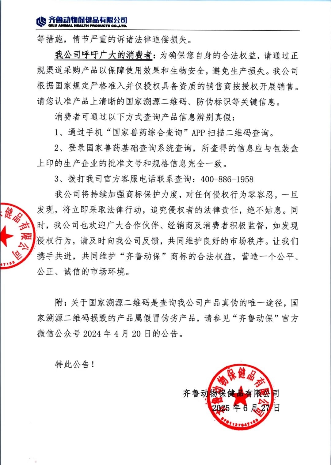 齊魯動保關(guān)于嚴厲打擊商標侵權(quán)及損毀溯源二維碼行為的公告