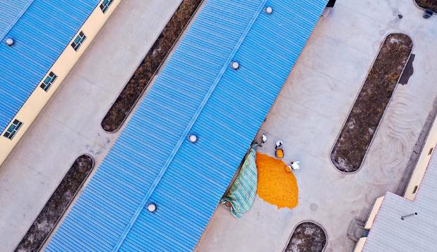 在巴音郭楞蒙古自治州和靜縣額勒再特烏魯鄉(xiāng)察汗烏蘇村肉鴿養(yǎng)殖繁育基地,工作人員為鴿子準(zhǔn)備飼料