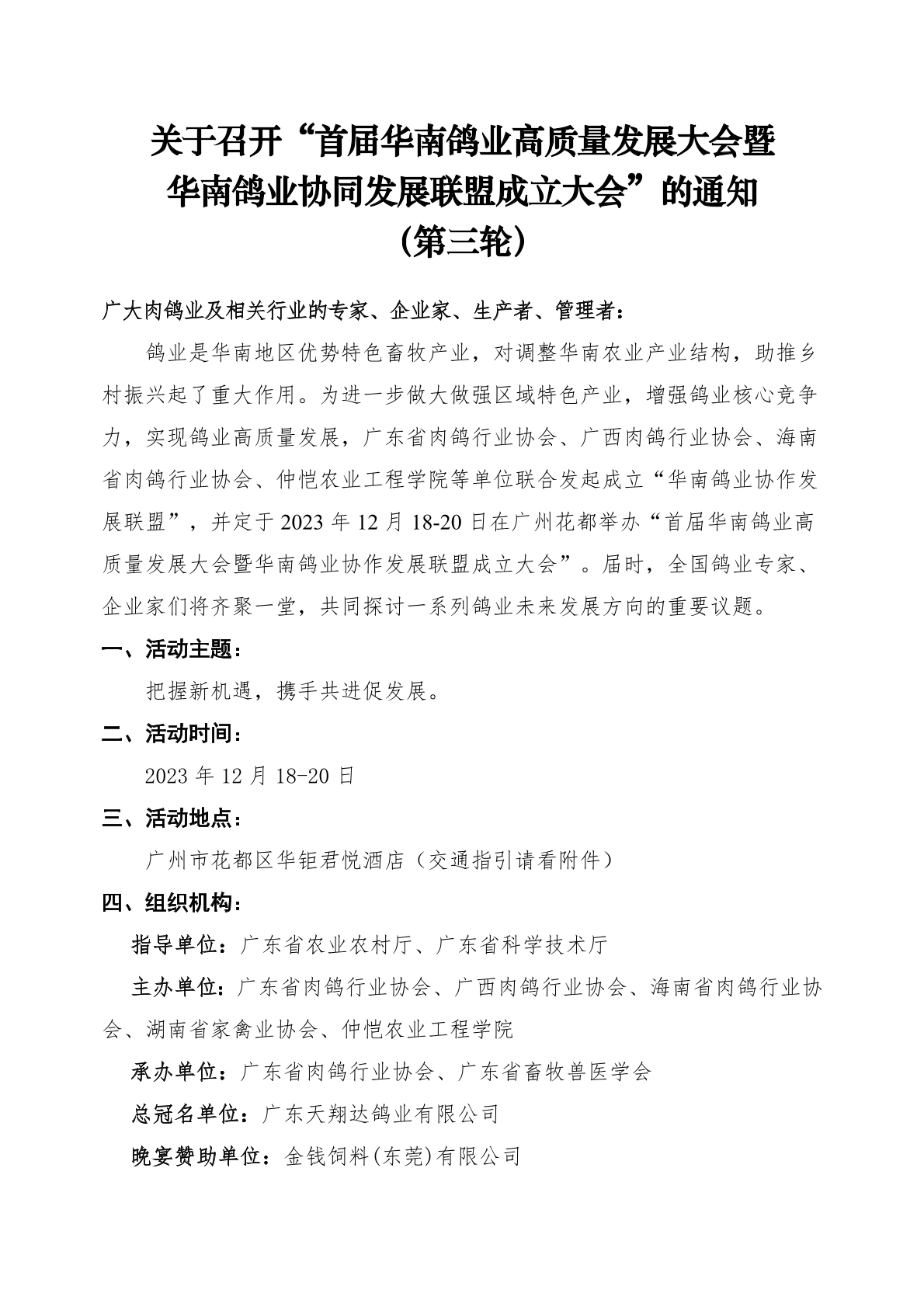 關(guān)于召開“首屆華南鴿業(yè)高質(zhì)量發(fā)展大會暨華南鴿業(yè)協(xié)同發(fā)展聯(lián)盟成立大會”的通知