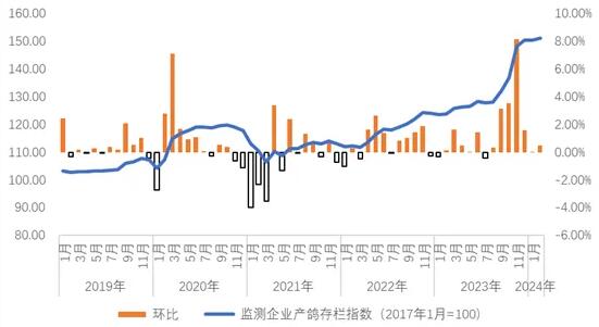 2024年1-2月,監(jiān)測企業(yè)產(chǎn)鴿存欄指數(shù)分別為150.43和151.15。雖然環(huán)比波動指數(shù)較低,均表現(xiàn)為一般性波動,但值得注意的是,產(chǎn)鴿存欄已經(jīng)連續(xù)7個月上漲,自監(jiān)測以來尚屬首次。與2017年1月相比,相同監(jiān)測企業(yè)的規(guī)模平均上漲了48%,表明規(guī)模企業(yè)正在不斷壯大。