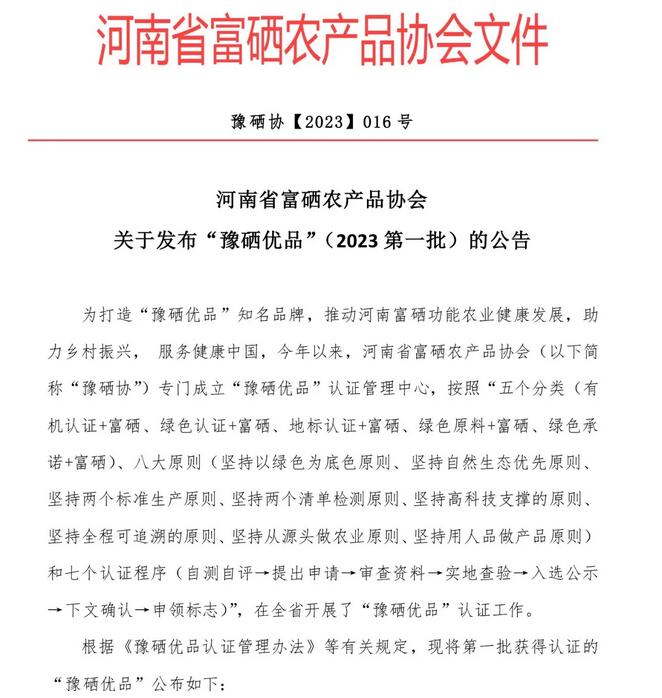 通過“豫硒優(yōu)品”富硒功能農(nóng)產(chǎn)品認(rèn)證