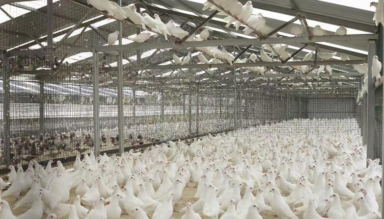 ▲天明鴿業(yè)肉鴿培育基地一角。