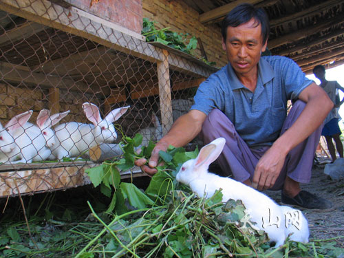 段新安發(fā)現(xiàn)肉兔好養(yǎng)上了“癮”,他把兔窩蓋成防空洞像“宮殿”似的,讓肉兔好乘涼。平時干完農(nóng)活回家順便拔點車前草、長壽菜、蒲公英等野草,經(jīng)常采食的野草代替了獸藥,不僅營養(yǎng)豐富,而且還具有防治疾病和促進(jìn)生長的作用,可獲得“花錢少、用藥方便、療效好”的防治效果。