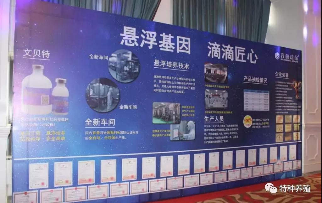 置身于會(huì)場(chǎng)之中,必然會(huì)被一塊藍(lán)色的展板所吸引。這塊展板以圖文的形式講述著新品文貝特背后的故事,從生產(chǎn)車間、研發(fā)工藝、抽檢情況,到技術(shù)人員、斬獲殊榮,相比于傳統(tǒng)兔瘟疫苗,文貝特具有強(qiáng)有力的優(yōu)勢(shì),相信文貝特這款基因疫苗可以在市場(chǎng)推廣中創(chuàng)造輝煌,同時(shí)也相信齊魯動(dòng)保生藥公司這家擁有六十年歷史的老牌企業(yè),可以獲得行業(yè)中更多領(lǐng)導(dǎo)、專家、用戶的認(rèn)可,讓“好疫苗 齊魯造”成為一塊金子招牌,永遠(yuǎn)屹立不倒。