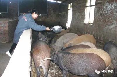 宗仁容在飼喂野豬