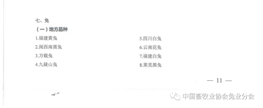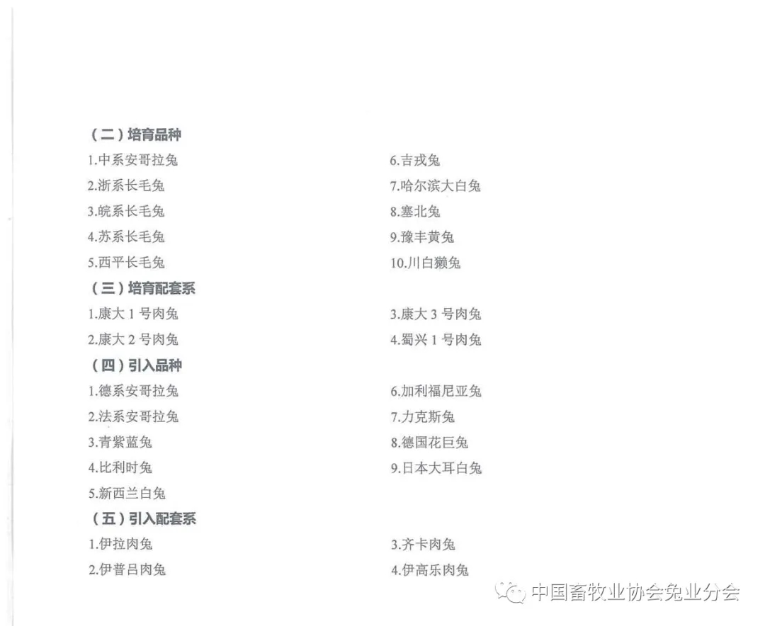 《國家畜禽遺傳資源品種名錄》(2021年版)兔業(yè)部分