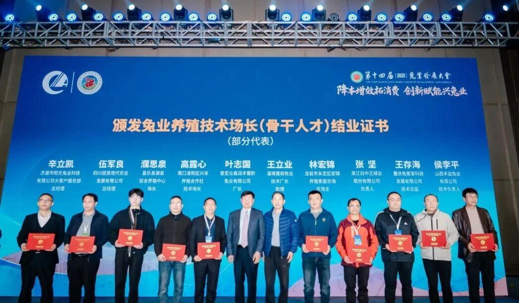 中國畜牧業(yè)協(xié)會(huì)沙玉圣秘書長、中國畜牧業(yè)協(xié)會(huì)兔業(yè)技術(shù)指導(dǎo)專家組長谷子林老師為兔業(yè)養(yǎng)殖技術(shù)場(chǎng)長(骨干人才)專項(xiàng)培訓(xùn)計(jì)劃的優(yōu)秀學(xué)員代表頒發(fā)結(jié)業(yè)證書。