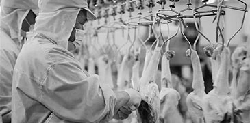 工作人員正在為鵝群喂飼料 檢查“五龍鵝”生長(zhǎng)情況 通過數(shù)智化平臺(tái)查看鵝棚狀態(tài) 按重量將鵝蛋進(jìn)行分類 天歌農(nóng)牧公司鳥瞰圖 食品加工間內(nèi)修剪