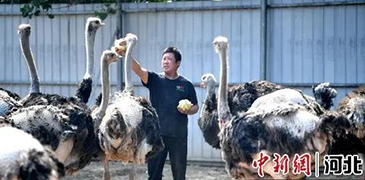養(yǎng)殖戶王秀瑞給鴕鳥喂青菜。劉唯清攝 近日,在河北省灤南縣扒齒港鎮(zhèn)后營(yíng)村的一處鴕鳥養(yǎng)殖場(chǎng)內(nèi),30多只體高近兩米、平均體重超過100公斤的鴕鳥正悠閑踱步。養(yǎng)殖戶王秀瑞